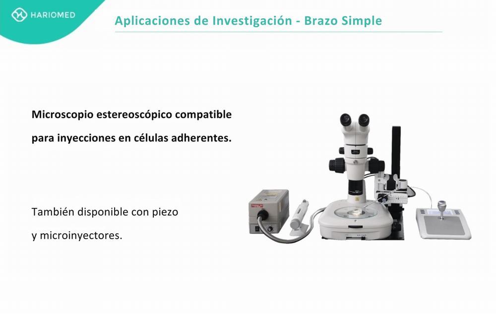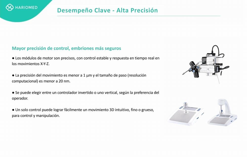 El micromanipulador IMS de HARIOMED (modelos IMS-320D/IMS-320U) es un sistema de micromanipulación eléctrica de alta precisión, diseñado para ser intuitivo y fácil de usar. Es una herramienta fundamental y ampliamente utilizada en el campo de la Fecundación In Vitro (FIV) para procedimientos avanzados como la IMSI (Inyección Intracitoplasmática de Espermatozoides Morfológicamente Seleccionados), ICSI (Inyección Intracitoplasmática de Espermatozoides) y la biopsia de embriones para PGT (Diagnóstico Genético Preimplantacional).