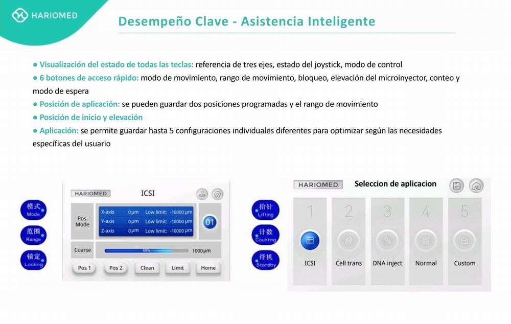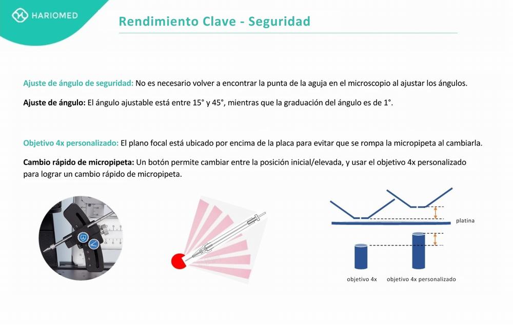Este equipo no solo es clave en reproducción asistida, sino también en investigación científica para aplicaciones como la transferencia de células madre y nuclear, edición génica y microinyecciones en embriones. Su diseño garantiza un control de movimiento preciso inferior a 1 µm, lo que es crucial para la delicada manipulación de gametos y embriones. Ofrece una operación estable y con respuesta en tiempo real para optimizar los resultados del laboratorio.